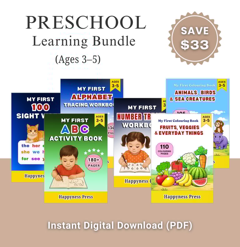 6 comprehensive preschool learning eBooks designed for children ages 3–5